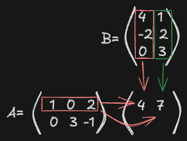Il prodotto si può fare, la nuova matrice avrà 2 righe e 2 colonne. Adesso iniziamo a moltiplicare con , poi con e cosi via.